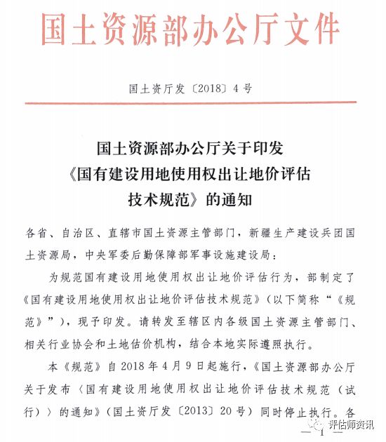 國有建設(shè)用地使用權(quán)出讓地價(jià)評(píng)估技術(shù)規(guī)范 | 國土資廳發(fā)(2018)4號(hào)