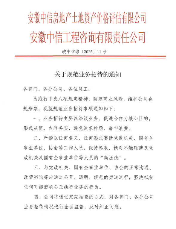 公司關于規范業務招待的通知