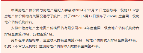 喜報丨我公司在2024年度房地產評估行業排名中取得佳績