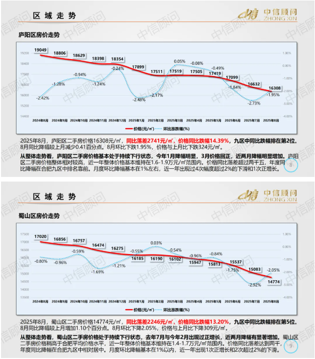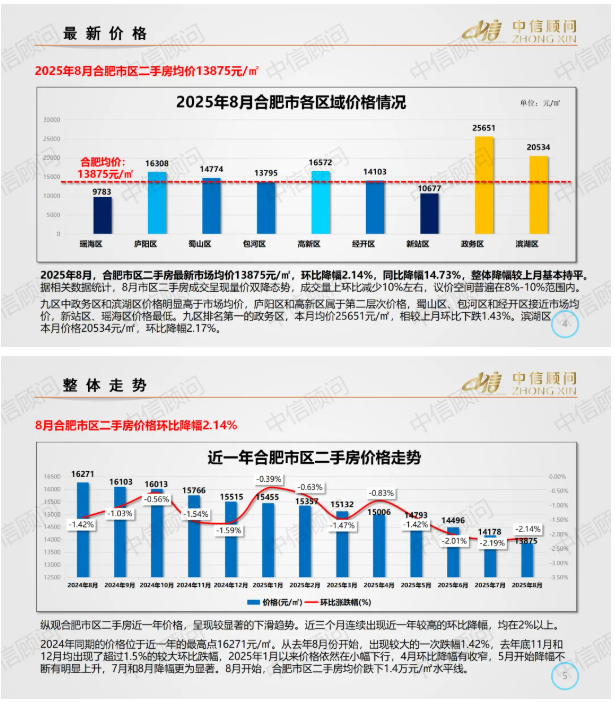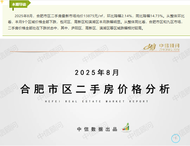 二手房市場 | 2025年8月,合肥住宅均價1.39萬元/㎡,環比下降2.14%,同比下降14.73%
