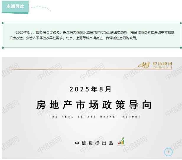 政策導向 | 2025年8月,國務院會議:采取有力措施鞏固房地產市場止跌回穩態勢