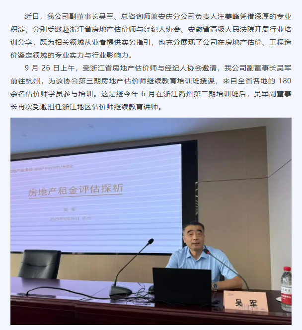 我公司吳軍和汪姜峰赴浙江省房地產(chǎn)估價師協(xié)會和安徽省高級人民法院作專業(yè)分享