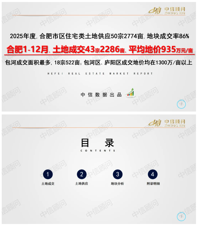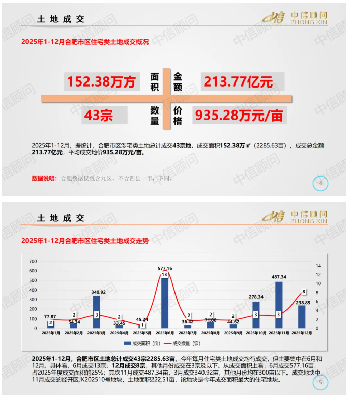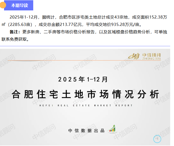 土地市場 | 2025年1-12月,合肥住宅用地成交43宗2286畝,平均地價935萬元/畝